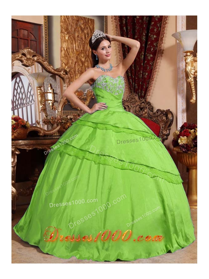 Fashionable Puffy Sweetheart with Appliques for 2014 Spring Green Quinceanera Dress
