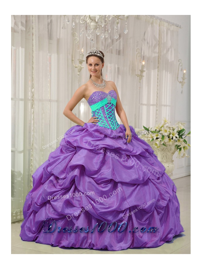 2014 Lavender Puffy Sweetheart Beading and Pick-ups Quinceanera Dresses