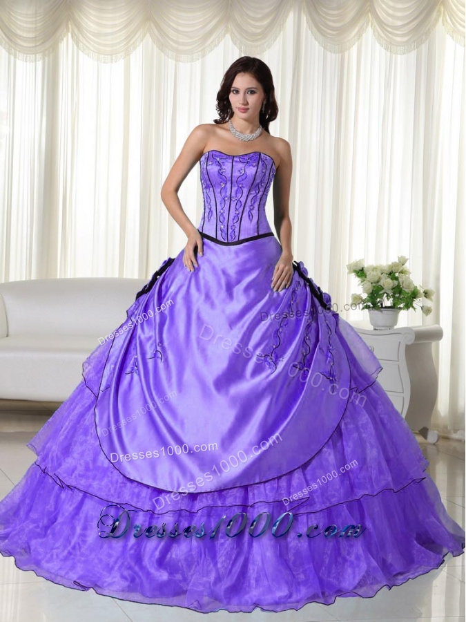 If you're a fan of the fancier, finer things in life – this might just be the dress for you. It features a gorgeous strapless bodice with embroidery embellishments, a sweetheart neckline and three hand-made flowers on both side with more shimmery beading in the center of the flower which make the dress more dazzling. Also there are flowers on the back and lace up back finishes the look of this elegant dress.
