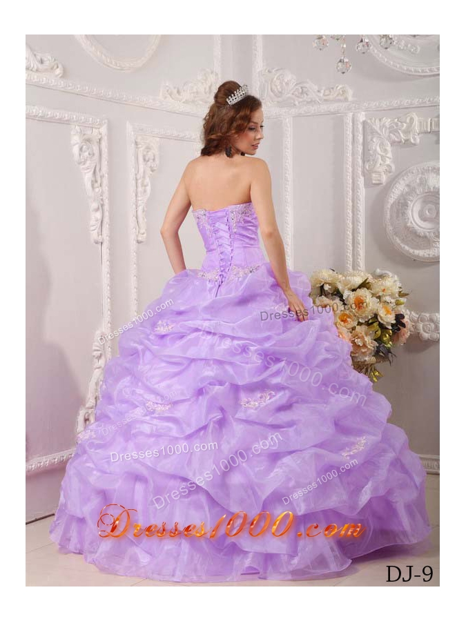 Pretty Exclusive Puffy Strapless 2014 Appliques Lavender Quinceanera Dresses