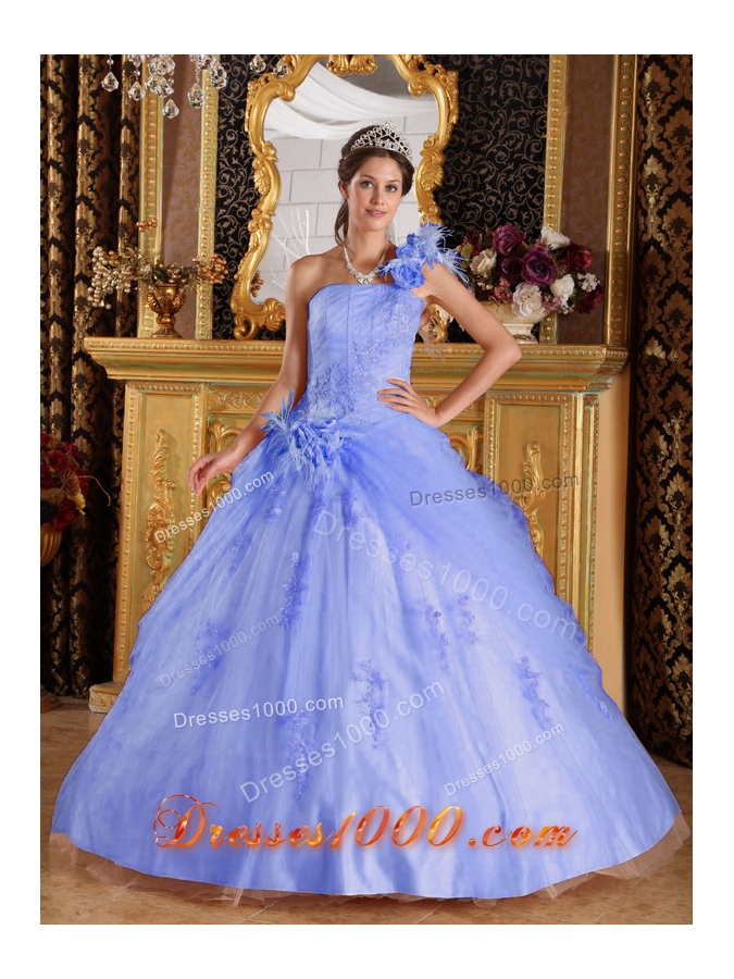 2014 Beautiful Ball Gown One Shoulder Appliques Quinceanera Dresses