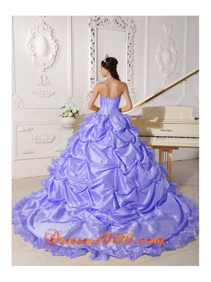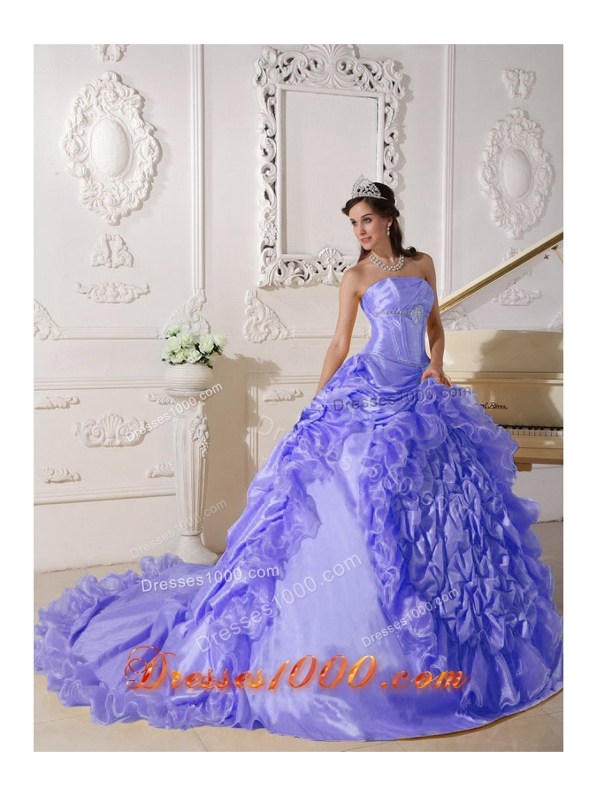 New Style Puffy Strapless Beading 2014 Quinceanera Dress with Court Train