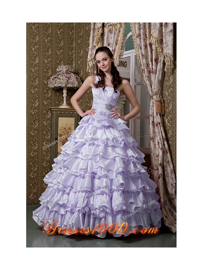 Brand New Lilac Princess One Shoulder Beading Ruffled Layers 2014 Quinceanea Dresses