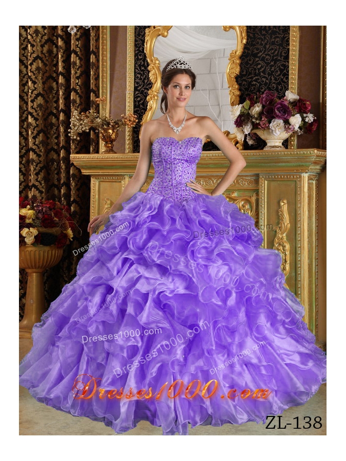 2014 Lavender Puffy Sweetheart Ruffles Quinceanera Dresses with Beading