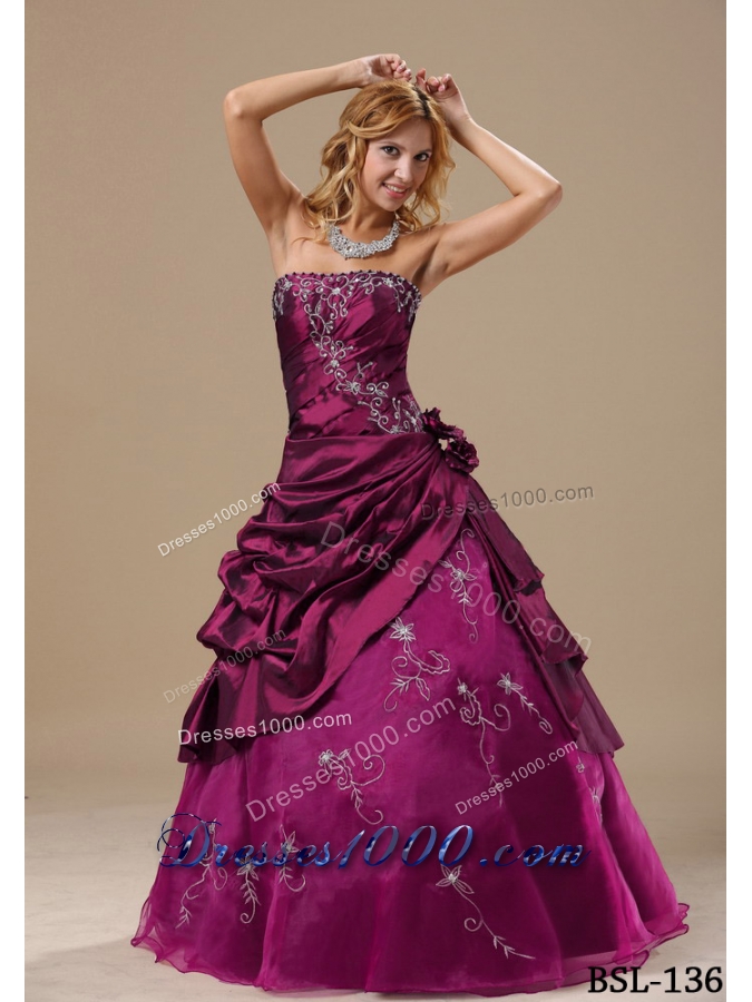 Strapless Embroidery and Hand Made Flowers Prom dress