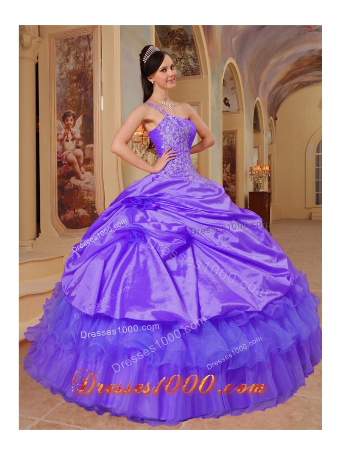 Elegant Purple Puffy One Shoulder Lace Quinceanera Dresses for 2014