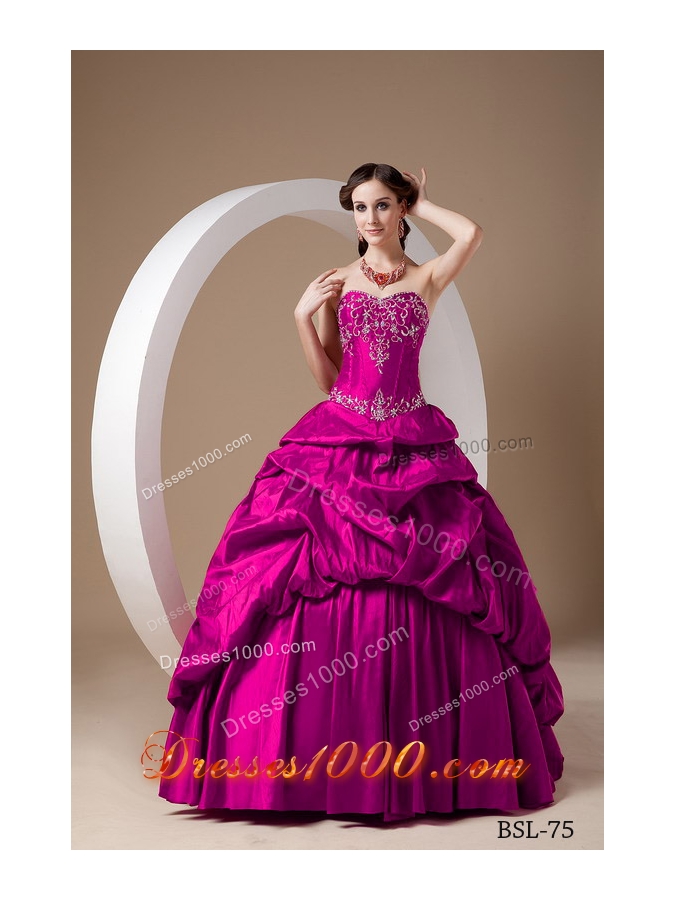 A-line Sweetheart Floor-length Taffeta Appliques Prom / Evening Dress