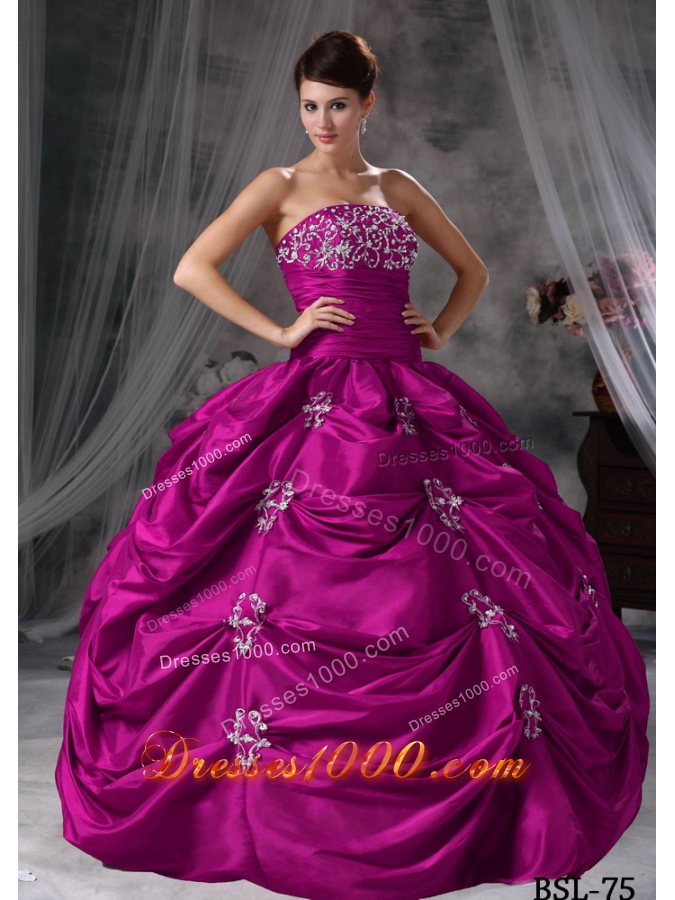 Ball Gown Strapless Floor-length Taffeta Appliques Quinceanera Dress