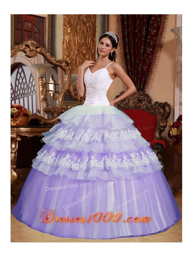 Puffy Spaghetti Straps Lace Appliques Quinceanera Dress for 2014