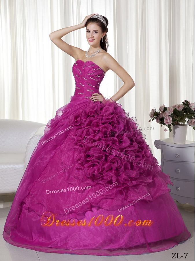 Ball Gown Sweetheart Floor-length Organza Beading and Ruch Quinceanera Dress