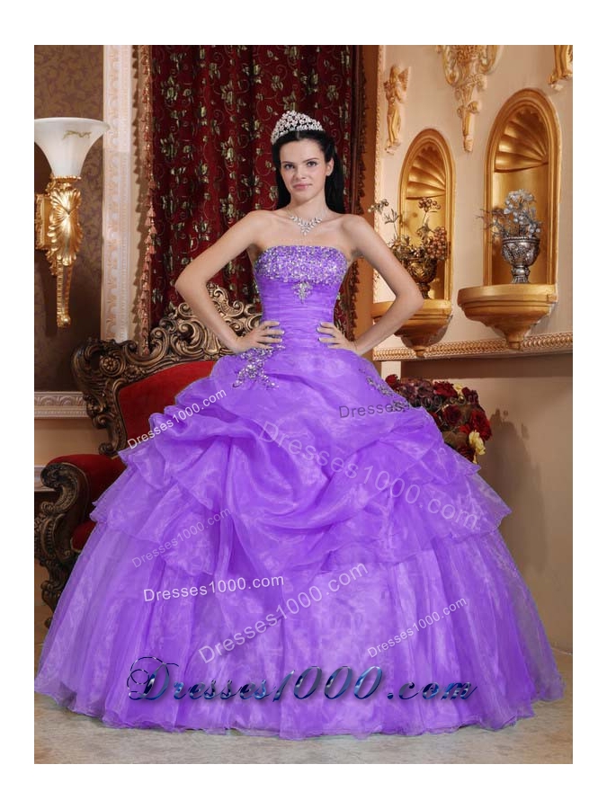 Lavender Puffy Strapless 2014 Beading Quinceanera Dresses with Appliques