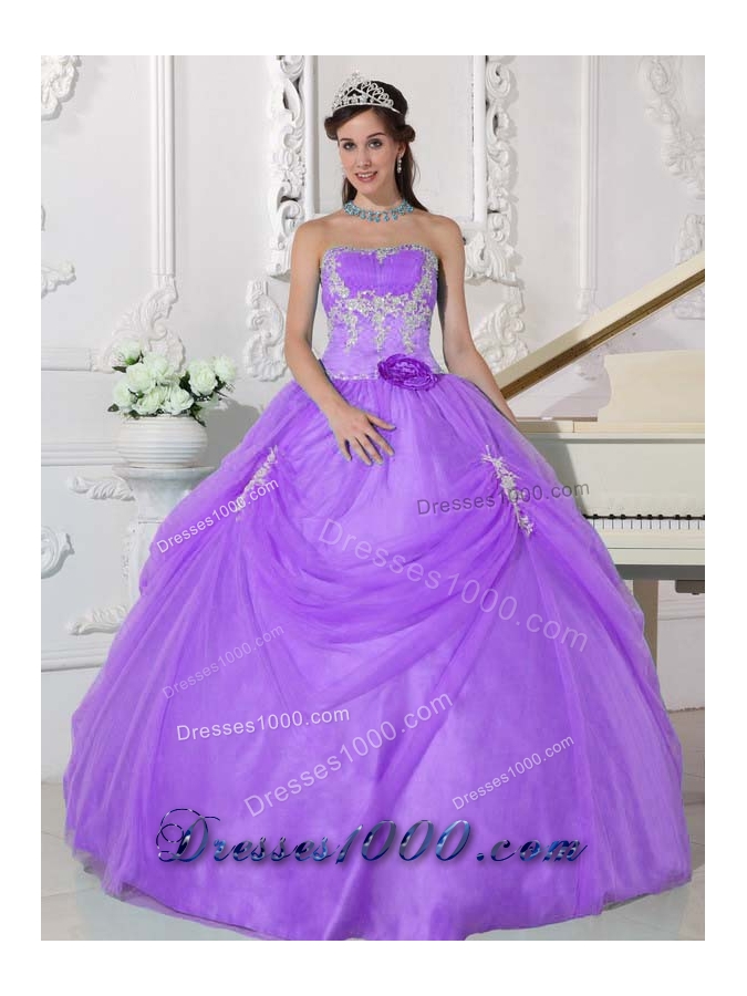 Sweet Lavender Puffy Strapless Appliques Quinceanera Dresses for 2014