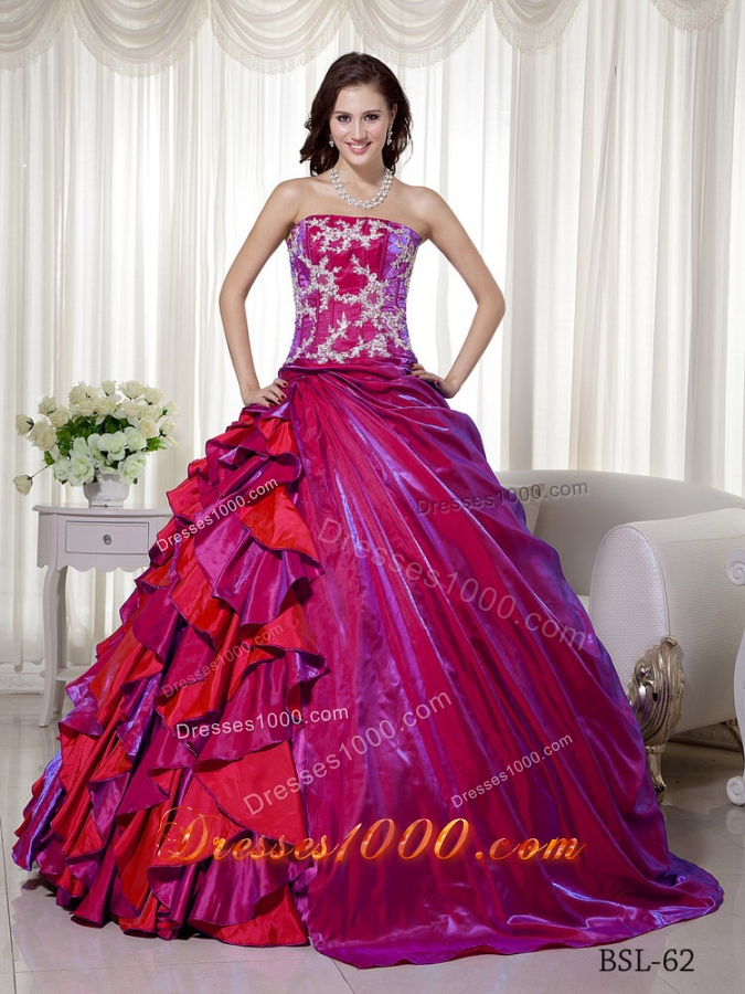 Ball Gown Strapless Floor-length Taffeta Appliques Quinceanera Dress