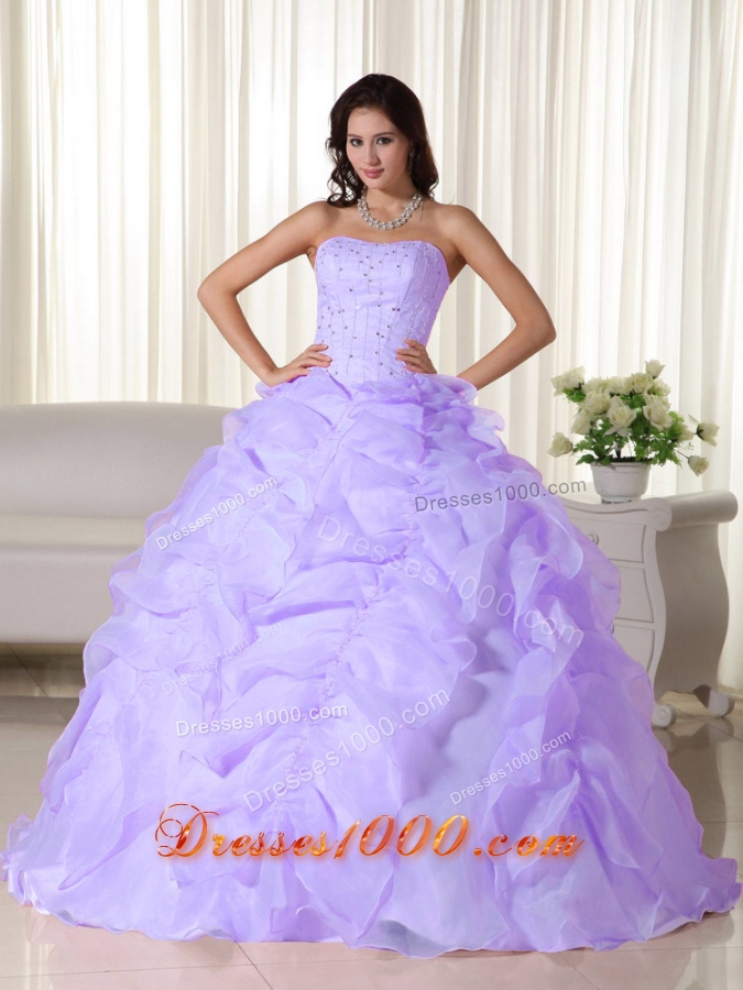 Perfect Lavender Puffy Strapless Ruffles and Beading Quinceanera Dresses for 2014