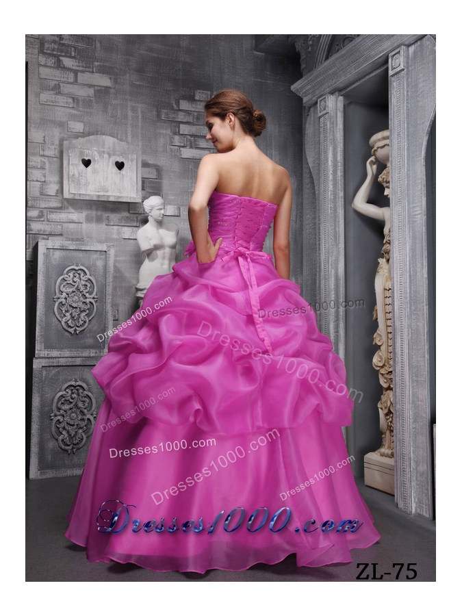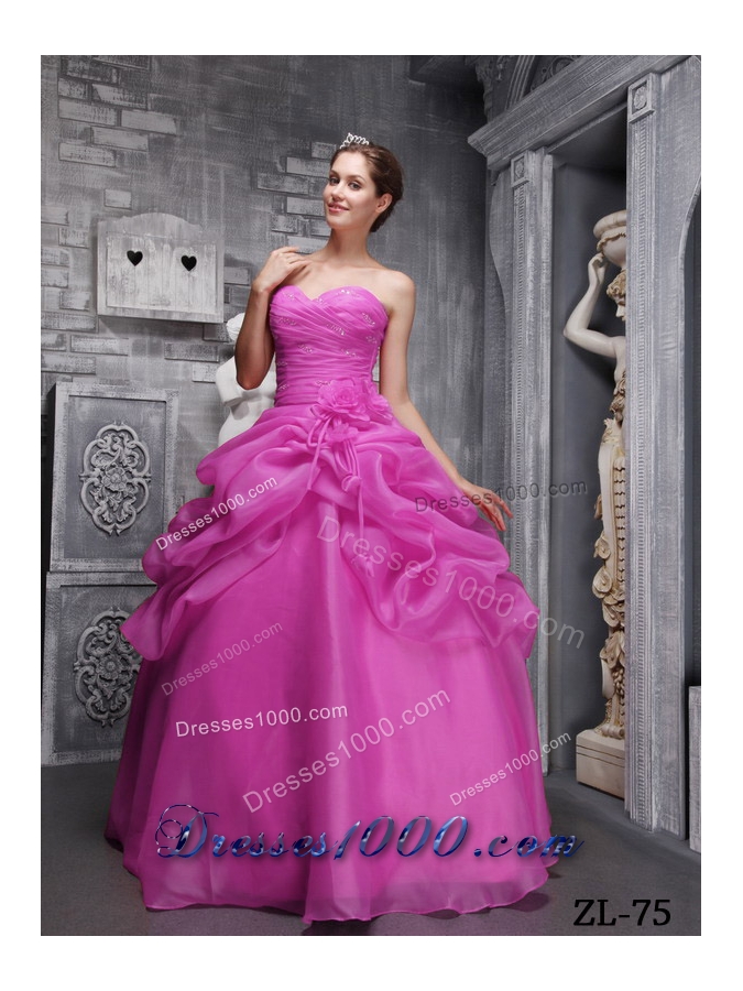 Fuchsia Ball Gown Sweethrart Floor-length Organza Beading and Ruch Quinceanera Dress