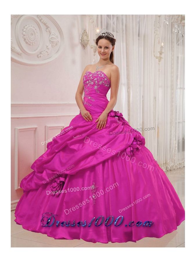 Fuchsia Sweetheart Appliques and Hand Made Flowers Sweet 16 Dresses