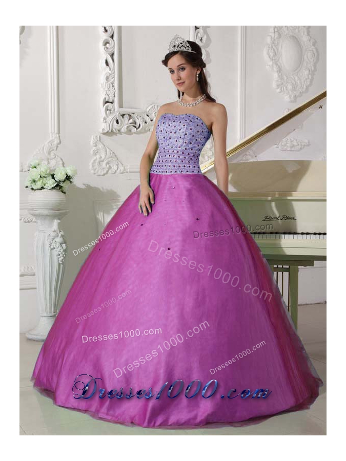 Lovely Fuchsia Sweetheart Tulle Beaded Decorate Quinceanera Gown
