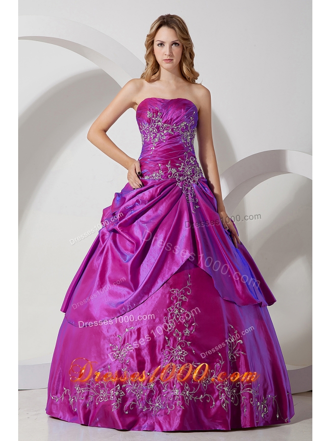 Fuchsia Strapless Taffeta Embroidery with Beading Quinceanera Dress