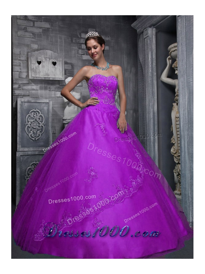 Sweetheart Taffeta and Tulle Quinceanera Dress with Beading and Appliques