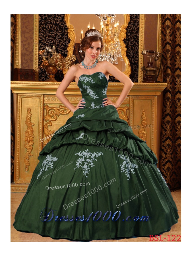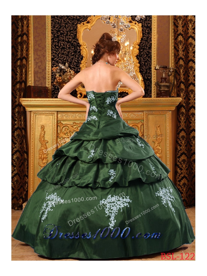 This kind of formal ball gown features its sweetheart strapless neckline.Ruched bottom with applique flowers decoration.Floor length and made of satin and lace up back is fabulous on this gown.?.This dress is available in any other color, and we also offer a made-to-measurement service if you need.The whole appearance is ball gown style,and the most important is the Hunter Green,sweetheart as well as made of satin, which will show your charming om the party.