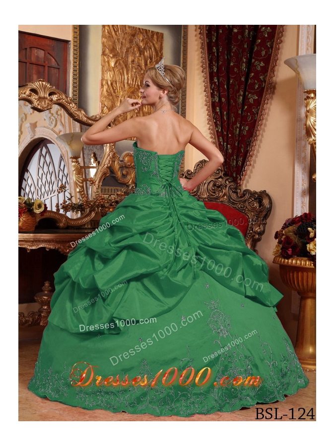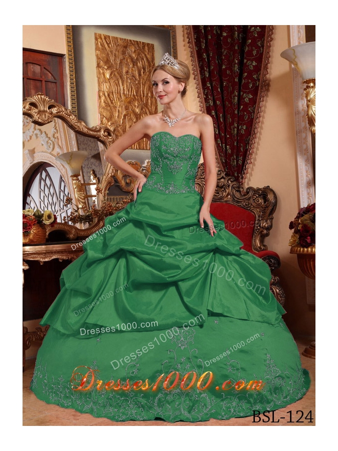 Dark Green Ball Gown Sweetheart Quinceanera Dresses Embroidery with Beading