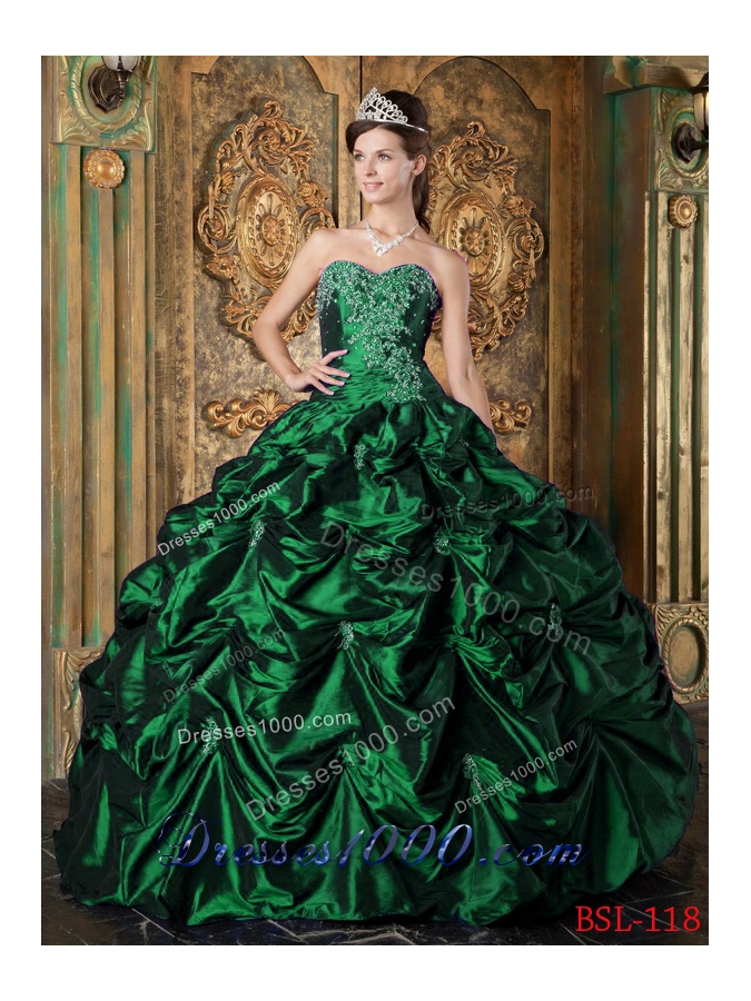 Dark Green Ball Gown Sweetheart Quinceanera Dresses with Picks-up