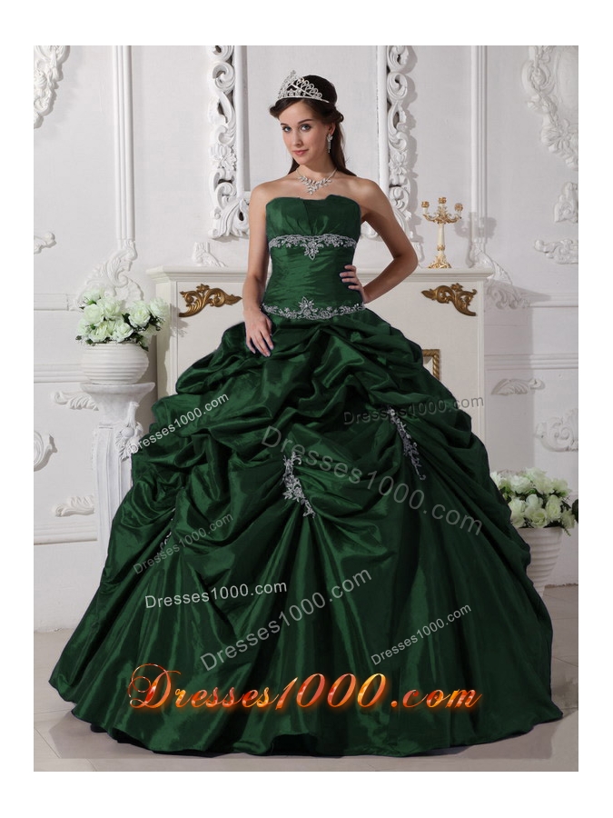 2014 Spring Dark Green Ball Gown Strapless Quinceanera Dresses with Appliques