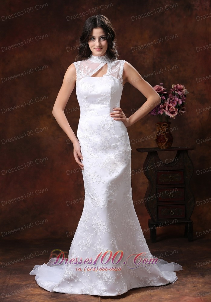 High Neck Lace Wedding Dress Mermaid with Train