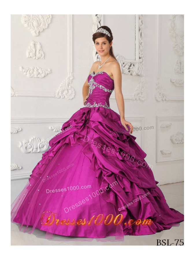 Fuchsia A-Line Sweetheart Taffeta and Tulle Quinceanera Dress with Appliques