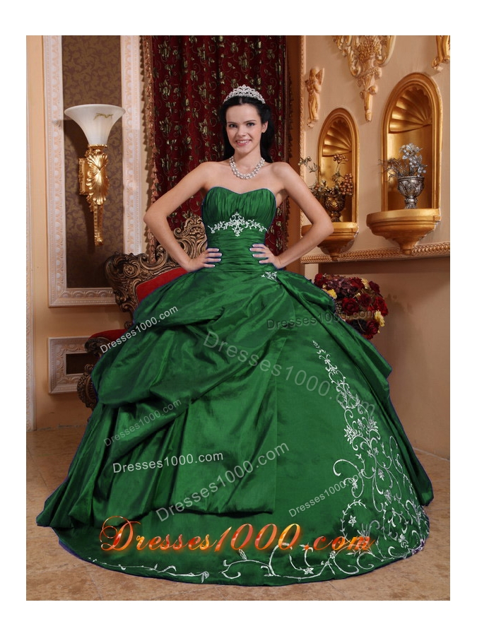 2014 Dark Green Puffy Sweetheart Quinceanera Dresses with Embroidery