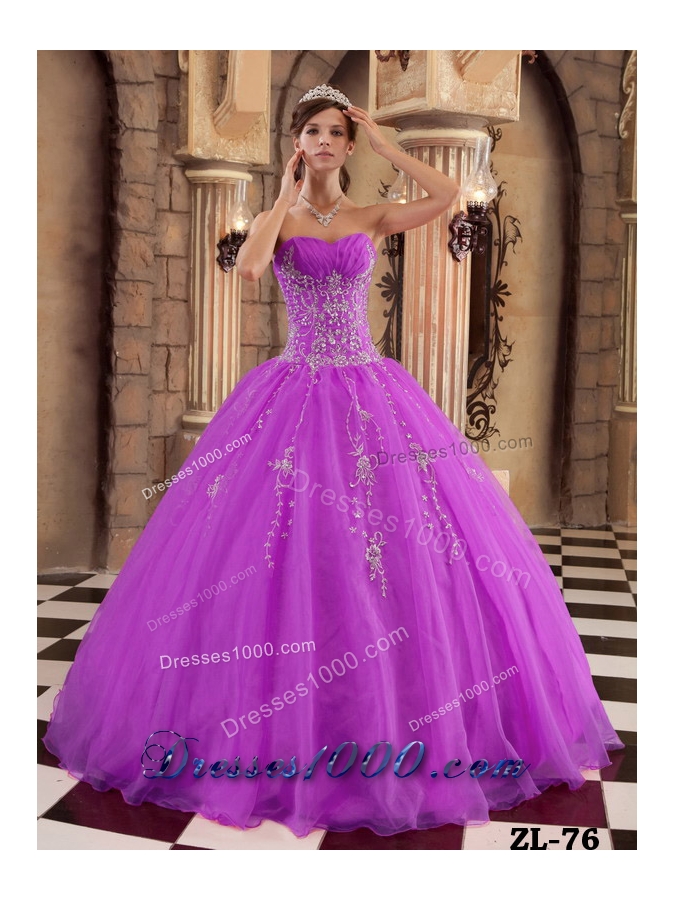 Cheap Sweetheart Organza Quinceanera Dress with Beading and Appliques
