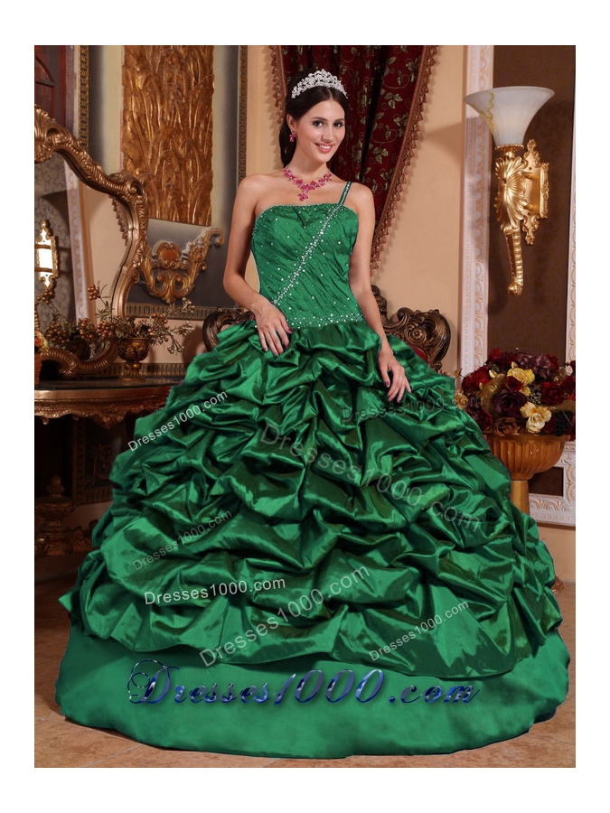 Dark Green Ball Gown One Shoulder 2014 Quinceanera Dresses with Pick-ups