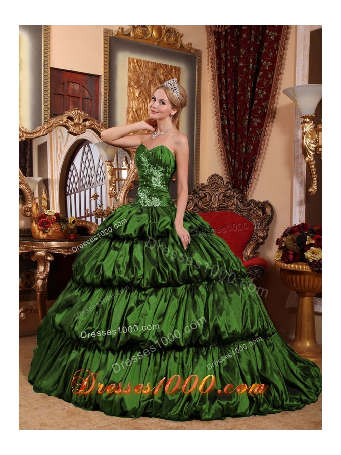 Dark Green Ball Gown Sweetheart Court Train Quinceanera Dresses with Appliques