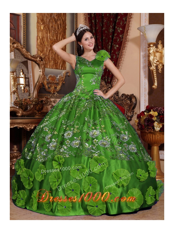 Green Ball Gown V-neck Quinceanera Dresses with Beading Appliques