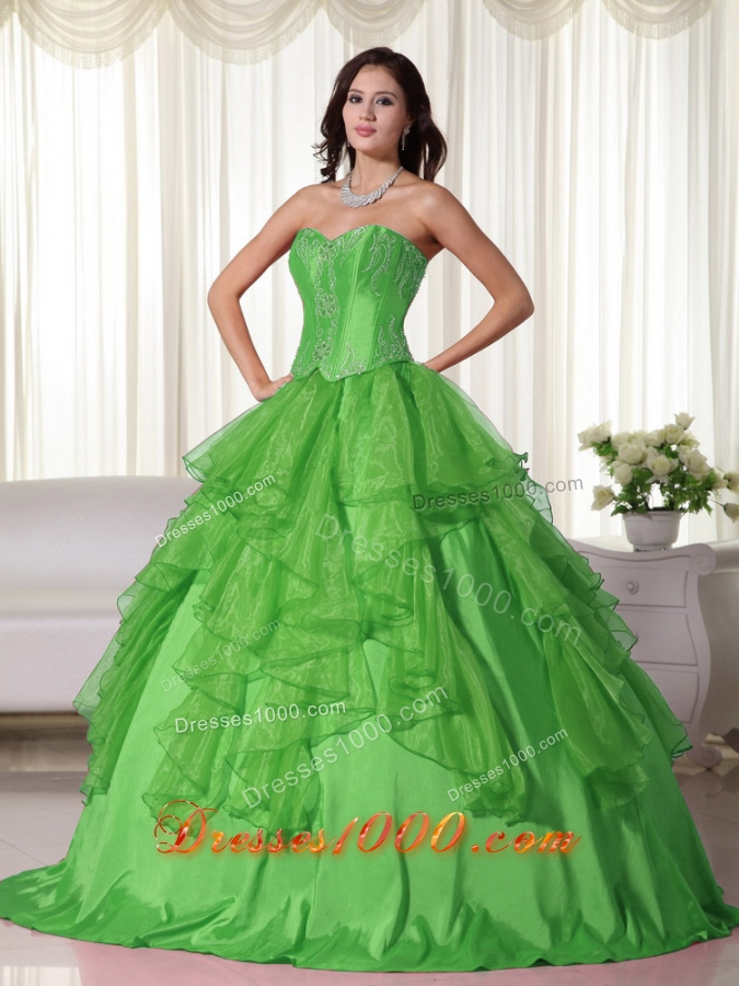 Green Ball Gown Sweetheart Organza Quinceanera Dress with Embroidery