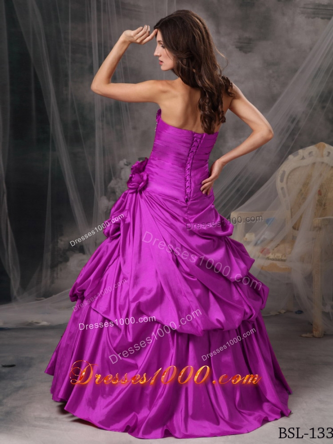 A-Line / Princess Strapless Floor-length Taffeta Beading Quinceanera Dress