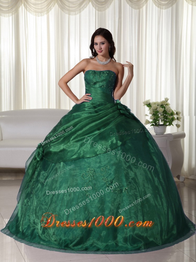 Dark Green Ball Gown Strapless Quinceanera Dress with Beading and Embroidery