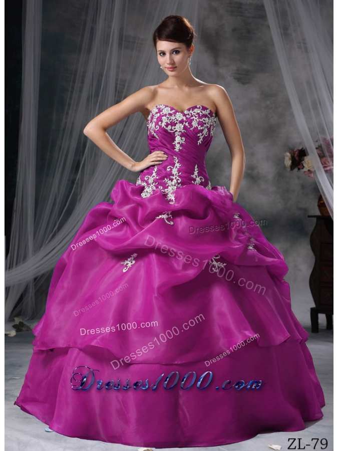 Ball Gown Sweetheart Floor-length Organza Appliques Quinceanera Dress