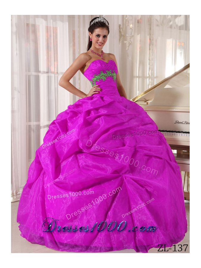 Fuchsia Ball Gown Sweetheart Floor-length Organza Appliques Quinceanera Dress