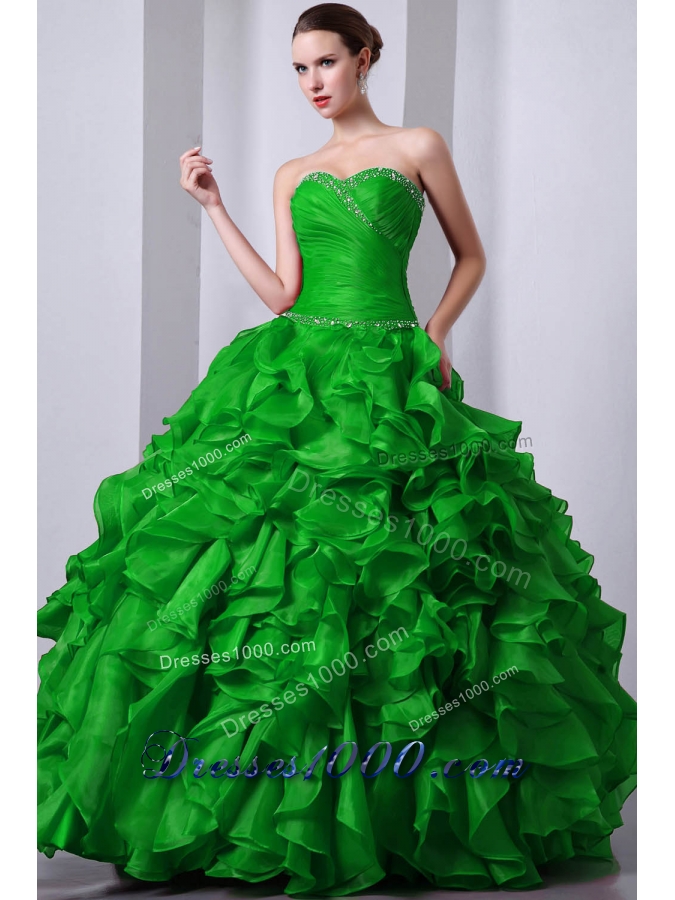 Dark Green Princess Sweetheart 2014 Quinceanea Dresses Beading Rufffles