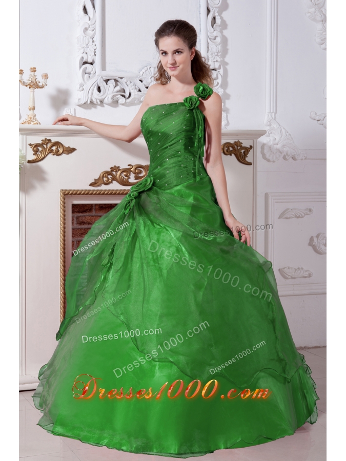 Green Princess One Shoulder Quinceanera Dresses with Beading