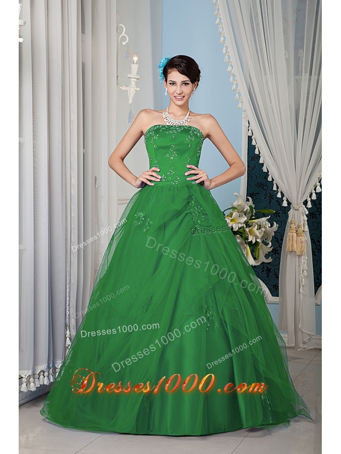 Green Princess Strapless Quinceanera Dress with Tulle Beading