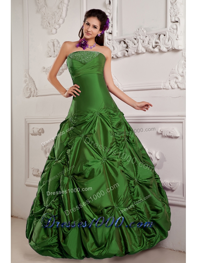 Green Princess Strapless Quinceanera Dress with Beading and Embroidery