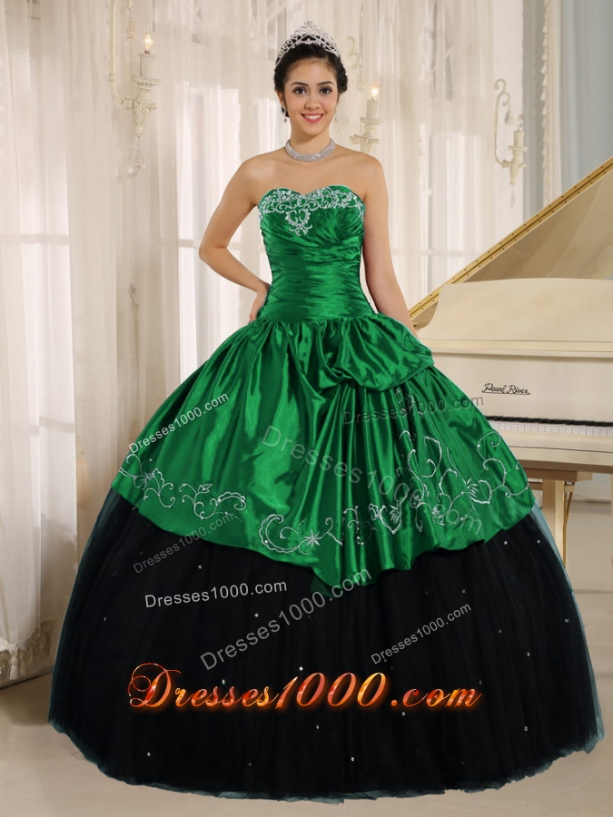 Custom Made Black and Green Quinceanera Dress with Beading and Embroidery