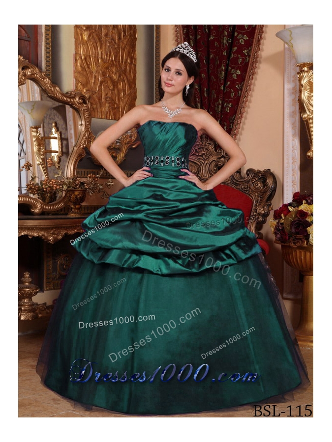 Dark Green Princess Puffy Strapless 2014 Quinceanera Dresses with Beading