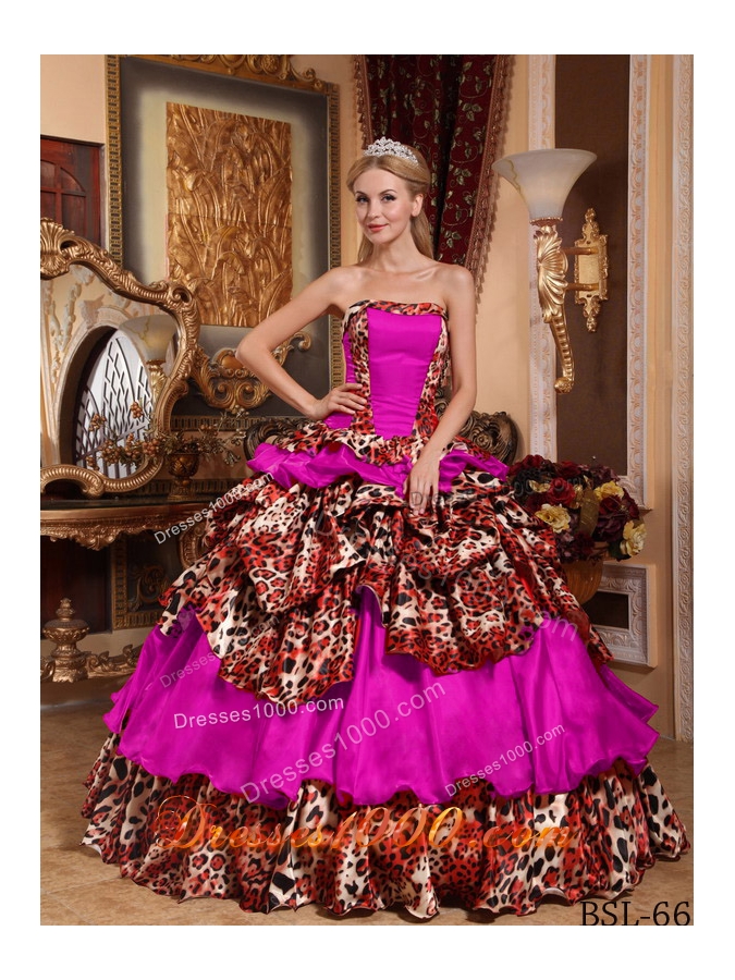 Fashionable Strapless Taffeta Pick-ups Quinceanera Dress with Leopard