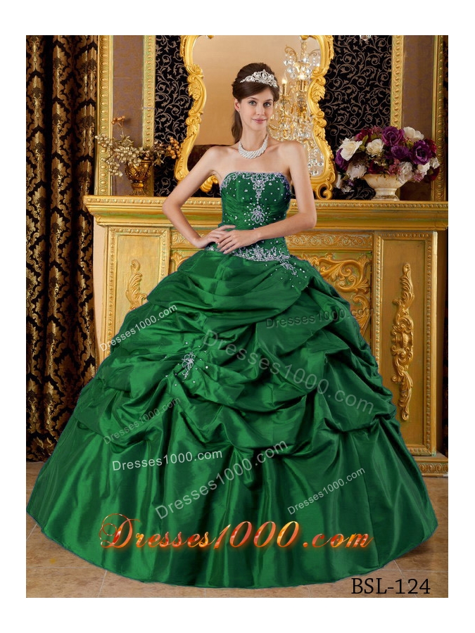 2014 Dark Green Ball Gown Strapless Quinceanera Dresses with Appliques