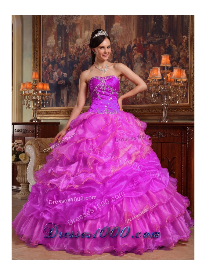 Sweetheart Appliques and Ruffled Layers Organza Sweet Sixteen Dresses