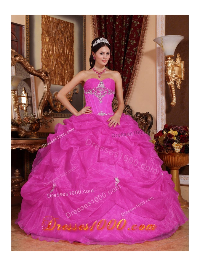 Appliques and Pick-ups Sweetheart Quinceanera Gowns in Fuchsia