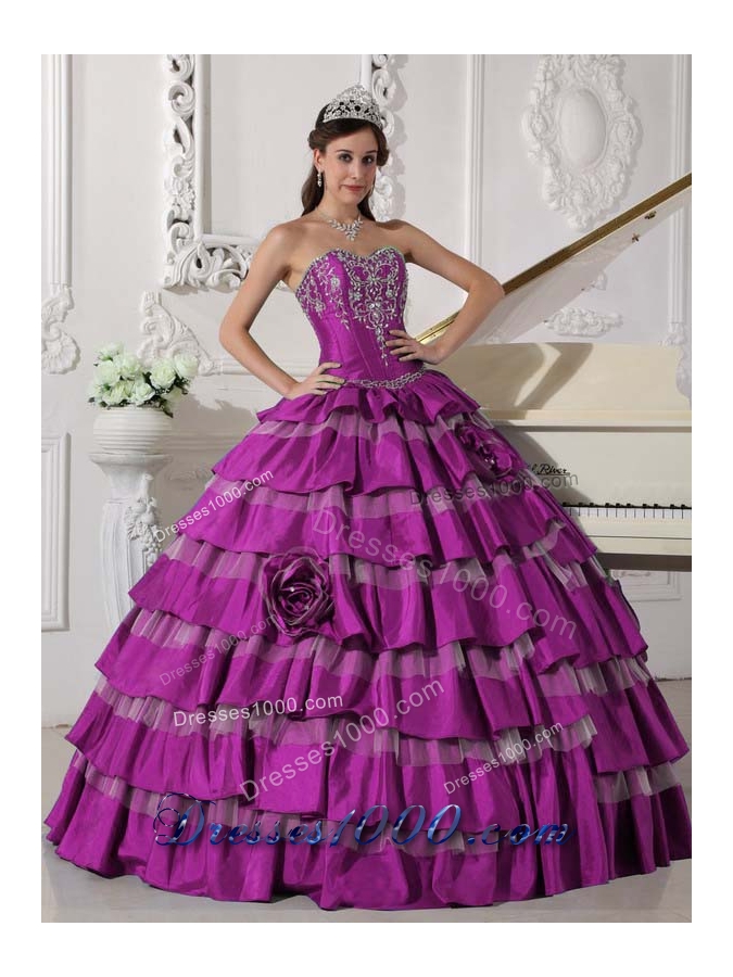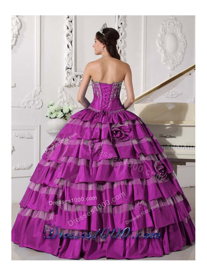 Sweetheart Fuchsia Quinceanera Dress with Appliques and Hand Made Flowers